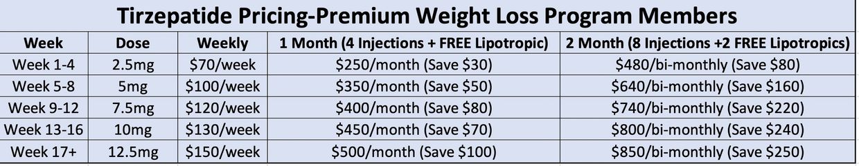 These prices are for our Premium Weight Loss Program Members' (Members that start at 2.5 mg)